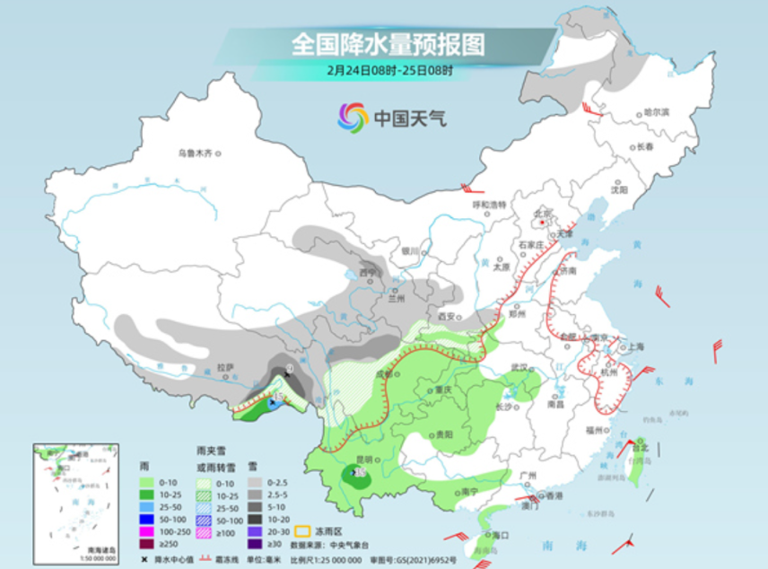 通宵起至后天,南边黯淡再度发展,而况限度东扩南压,会障翳江南、华南大部地区,近期表象干旱最为严重的广西东南部、广东西南一带将迎来中雨。此外,今明两天,青藏高原、川西高原等地的雨雪天气仍会捏续,局地有强降雪。